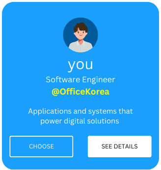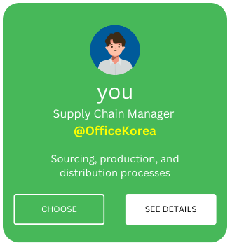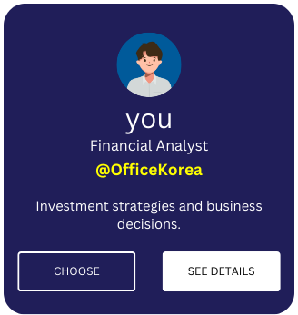 Request Access or Ask a QuestionOfficeKorea is an English language training program designed specifically to improve your English communication skills for professional settings. This program does NOT provide training or guidance on how to perform your actual job duties. The companies, structures, roles, and scenarios presented within OfficeKorea are entirely fictional and created solely for educational and simulation purposes. Any resemblance to real businesses, organizations, or situations is purely coincidental. OfficeKorea does not guarantee any specific employment outcomes or specific improvements in job performance.